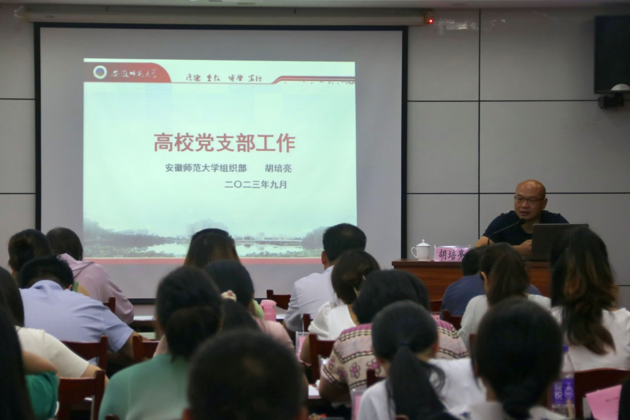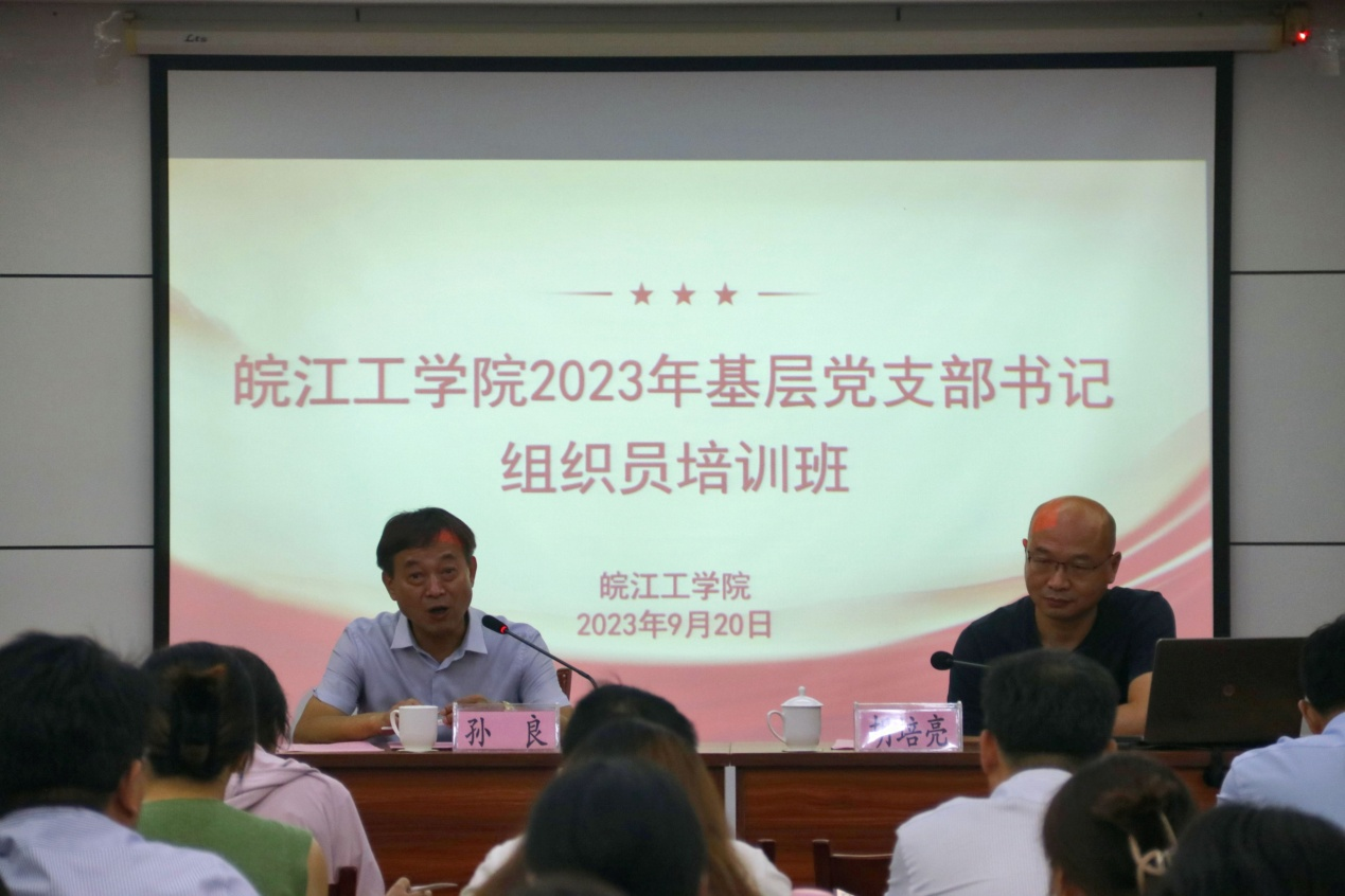 9月20日下午,我校在文海宾馆5号会议室开展2023年基层党支部书记、组织员培训班专家辅导。安徽师范大学党委组织部正处级组织员胡培亮、安徽师范大学党委组织部组织科科长李高举应邀到校辅导授课。皖江工学院党委副书记孙良,基层党支部书记、组织员、党务部全体人员参加。此次辅导授课由党委副书记孙良主持。