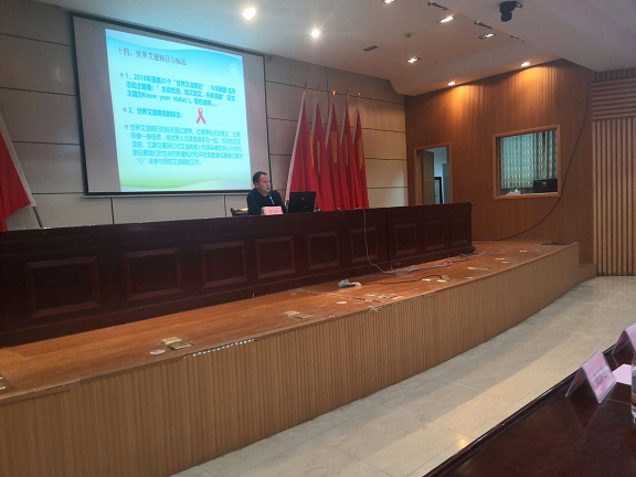 10月9日晚七点,由马鞍山市疾控中心和我校青年志愿者协会联合举办的预防艾滋病及结核病知识宣传讲座在图书馆报告厅开展。马鞍山市疾控中心副主任娄金海,全国劳动模范、马鞍山市疾控中心艾防科科长朱宏斌,结防科科长章江,支部书记孔剑,副书记季洁,门诊部医生夏福林,我校团委指导老师龚澎甦等嘉宾出席了本次讲座。