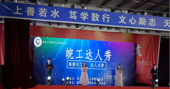 皖江工学院第三届皖工达人秀于2021年12月4日晚在大学生活动中心成功举行。校团委指导老师、社团指导老师、学社联全体人员、各兄弟组织的代表以及全校百余名学生参加了本次活动。