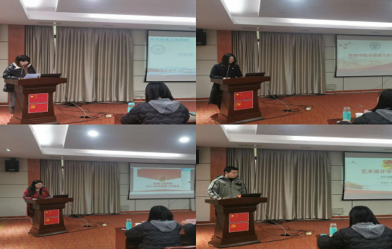 水利工程学院、土木工程学院、电气信息工程学院、机械工程学院、财经学院、管理学院、艺术设计学院分团委书记就2021年前工作情况进行现场述职。述职人员围绕强化思想政治引领工作情况;加强团的基层建设情况;落实全面从严治团,推动改革情况;围绕学校党政中心、提升大局贡献度工作开展情况等方面,介绍2021年重点工作完成情况,工作中存在的困难、问题、改进措施及计划。与会人员就述职情况进行评分。