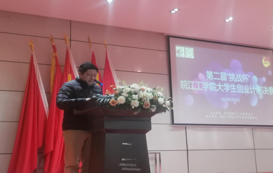 乘着科技创新、自主创业的风帆,2022年2月23日下午14时,由共青团皖江工学院委员会主办、皖江工学院大学生科技创新协会承办的第二届“挑战杯”皖江工学院大学生创业计划校内决赛在霍里山校区图书馆报告厅举行。市科创中心副主任王克力、雨山区科技局局长汪杭、市科技局招商部部长周元珺、市人力资源中心创业科科长刘少铸、花山区科协主任汪建军、雨山区科技局办公室主任陈燕、市天地合众创空间运营总监芮亮,我校双创学院院长朱昌平、学工部副部长江春明、校团委书记尚贤燕担任本次大赛的评委。校级初赛中的13项一等奖获奖项目均参与到决赛环节,本次决赛将从13项项目中决出10项参与省级大赛。
