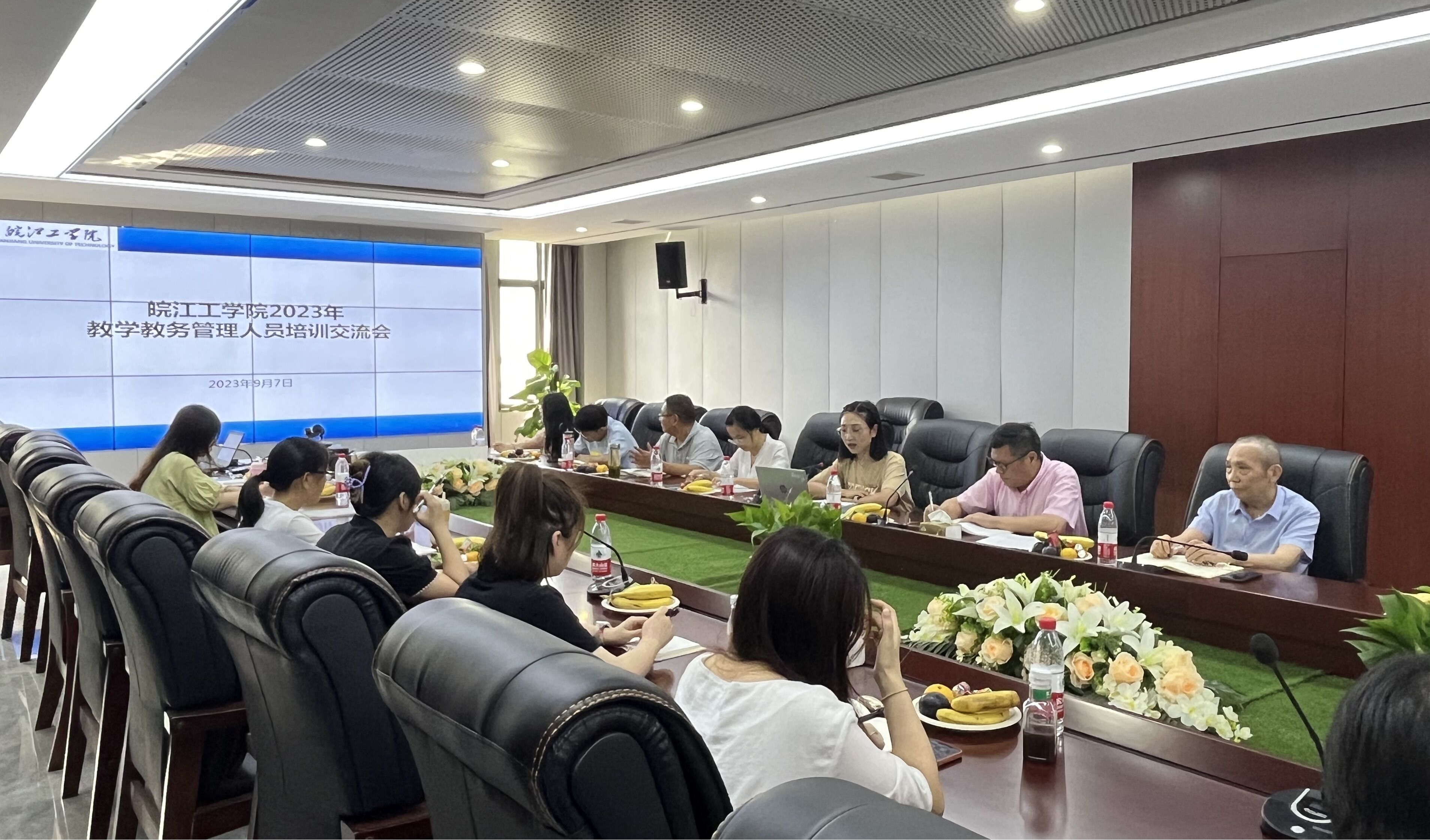 9月7日下午,由教师发展中心主办,教务部承办的“教学教务管理人员培训交流会”在行政楼F417会议室成功举办。校长吴继敏、副校长阮怀宁,评估办、教务部负责人,教务部各科室负责人和各学院(部)教学教务管理人员共计三十余人参加交流会。会议由教务部常务副部长孙娴主持。