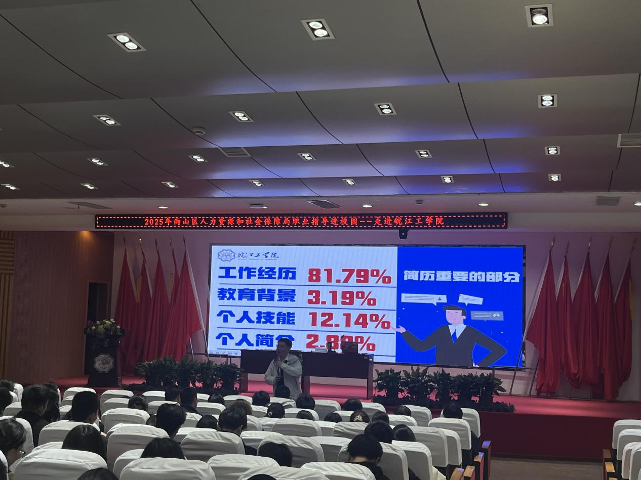 为帮助大学生们提早谋划职业道路,解决职业生涯中的困惑,引导学生树立积极向上的就业观念。3月20日,马鞍山市雨山区人力资源和社会保障局2025年职业指导进校园活动在学校图书馆报告厅举办,现场吸引了300多名学生。