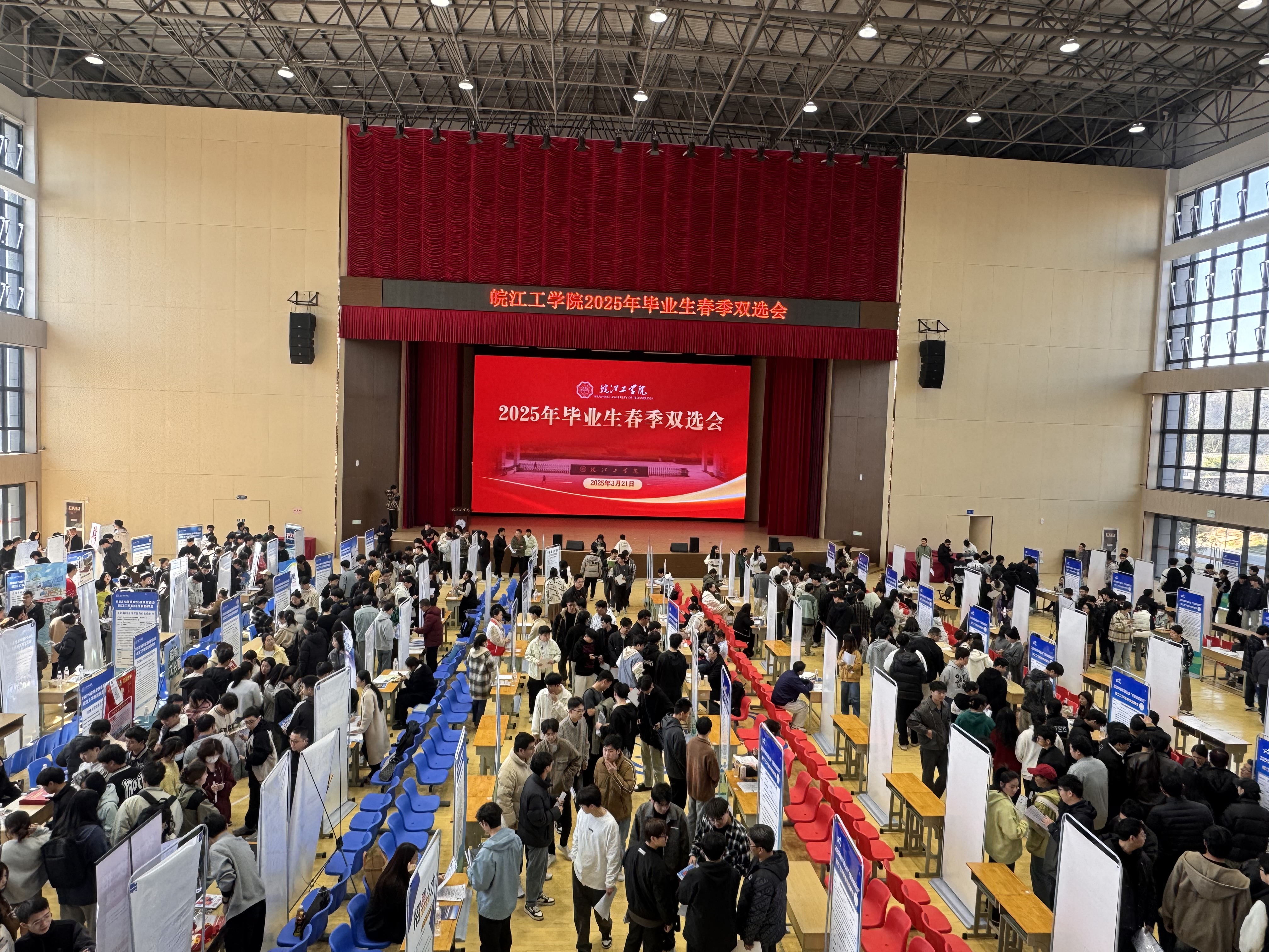 3月21日,春光明媚、朝气蓬勃,2025届毕业生春季校园双选会暨2025年春季马鞍山市“才能聚诗城高校行”皖江工学院专场会(以下简称“双选会”)在校体育场如期举办。双选会由中共马鞍山市委人才网、马鞍山市人力资源社会保障局和皖江工学院联合主办,市人社局、市人力资源管理服务中心相关同志莅临招聘会现场,副校长侯进元、王志深入双选会现场,详细了解招聘会的组织情况,与毕业生、用人单位亲切交流,学生工作部常务副部长汪朱华、各学院副书记和全体毕业班辅导员参加招聘会现场指导工作。