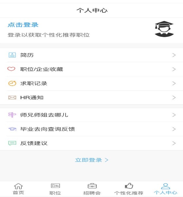 学生登录以后,完善个人信息,可以参与在线投简历、在线考试、在线面试和电子签约等活动。