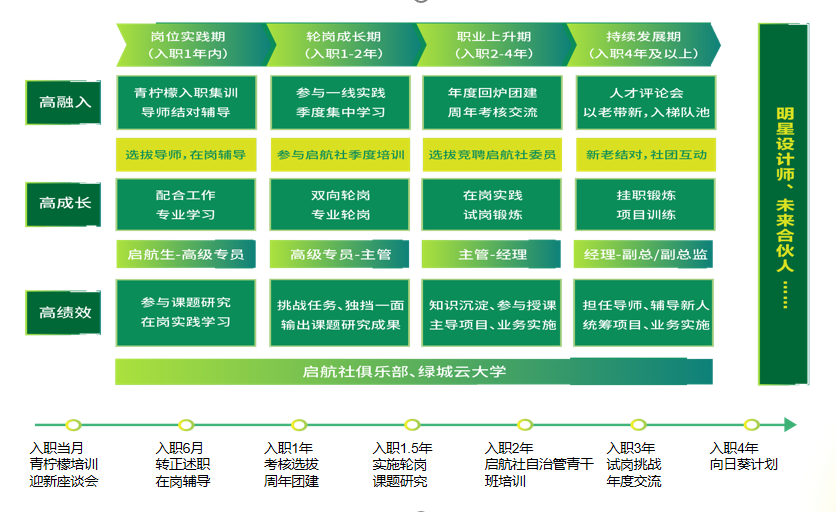“启航生”是绿城中国校招子品牌,该项目是绿城中国全产业链综合服务业务“绿城+”板块为满足人们对美好生活的追求而制定的专项毕业生招募计划。我们招聘的是一群吃苦耐劳、无畏挑战的优秀毕业生,并将通过专项培养发展,使之成长为技术专家或项目负责人。