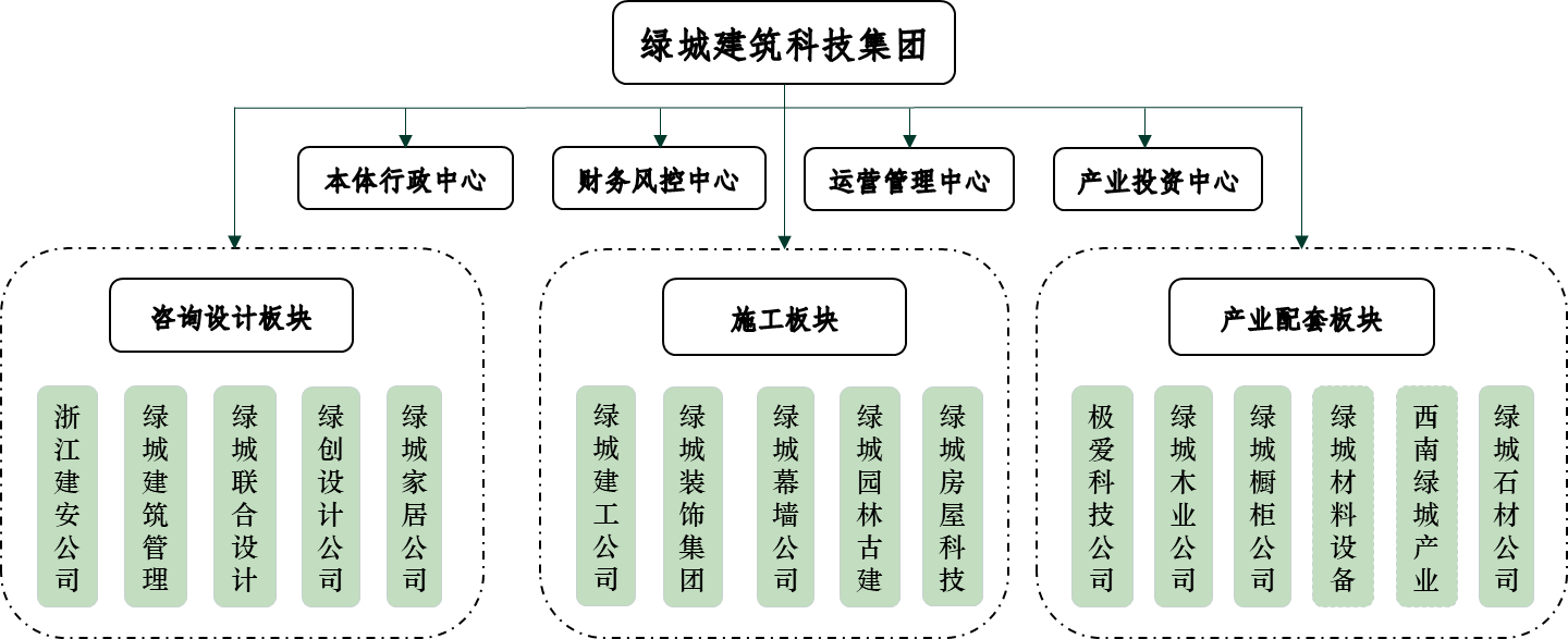 绿城建筑科技集团是集咨询管理、全维设计、高标施工、直营直采业务为一体的全产业链集团。发展至今,人员规模已扩大至1000多人,业务范围已涵盖工程总承包、装饰装修、幕墙施工、园林古建、智能化、装配式内装、室内设计、建筑设计、家居软装、木制品、橱柜、材料设备、造价咨询等领域,并设立多家专业子公司,能够为客户提供一站式、全方位、个性化的品质服务。