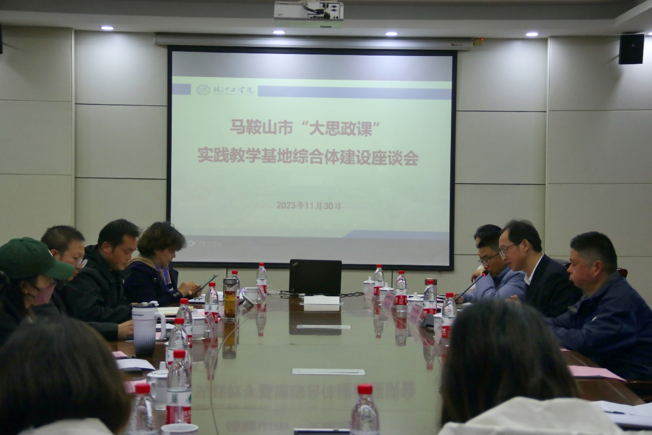 11月30日下午,我校在文海宾馆2号会议室召开马鞍山市“大思政课”实践教学基地综合体建设座谈会。市委宣传部副部长齐道明,第一批“大思政课”实践教学基地各单位负责人,皖江工学院副校长孙良,皖江工学院马克思主义学院党总支书记、常务副院长刘双参加本次座谈会。座谈会由刘双主持。