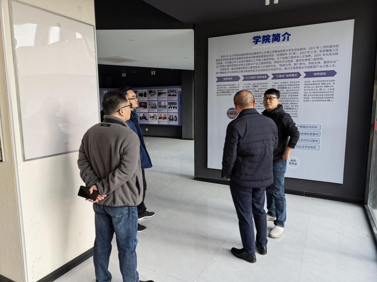 黄昭明副院长首先向黄继刚副院长一行详细介绍了皖江工学院工程师学院的发展历程。他提到,学院自创立以来始终以“服务地方产业、培养实战型工程师”为宗旨,通过整合政府、高校和企业资源,逐步构建了覆盖“校企协同育人、项目驱动创新”的教育体系。黄昭明强调,学院近年来通过优化专业布局、强化实践平台建设,在应用型工程师培养上已取得一定成效。在谈及地方支持时,黄昭明教授重点介绍了马鞍山市政府对本市三所本科院校工程师学院的扶持政策。他提到,政府通过“政策引导、资金配套、项目落地”三位一体举措,为学院打造了产教融合生态圈。推动本地企业与工程师学院共建实验室、冠名班和实习基地,实现教育链与产业链的深度衔接。
