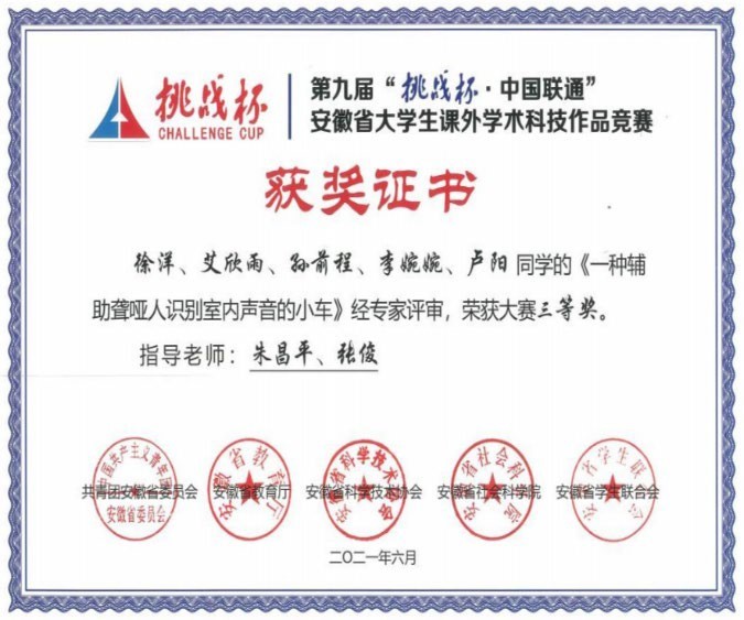 我是皖江工学院 2019 级车辆工程孙前程,我高中毕业于阜阳市临泉县第二中学。目前成功上岸沈阳航空航天大学。我能被沈航录取,得益于大学期间学校的精心培养以及自己的不懈努力。我大二即加入学校双创学院卓越实验室,在实验室中,我和项目组同学自主完成大创项目 1 项,项目不仅做出了实物作品,还获得国家受理发明专利 1 件,获得互联网+等学科赛事省级及以上奖励 3 项。感谢学校一直重视学生工程实践能力的培养,积极为学生不断改善学习条件。感谢老师的辛勤付出、悉心教诲。接下来我将铭记恩师教诲和“上善若水、笃学敦行”的校训,在研究生阶段继续努力学习,不负大学期间学校和老师的精心培养。