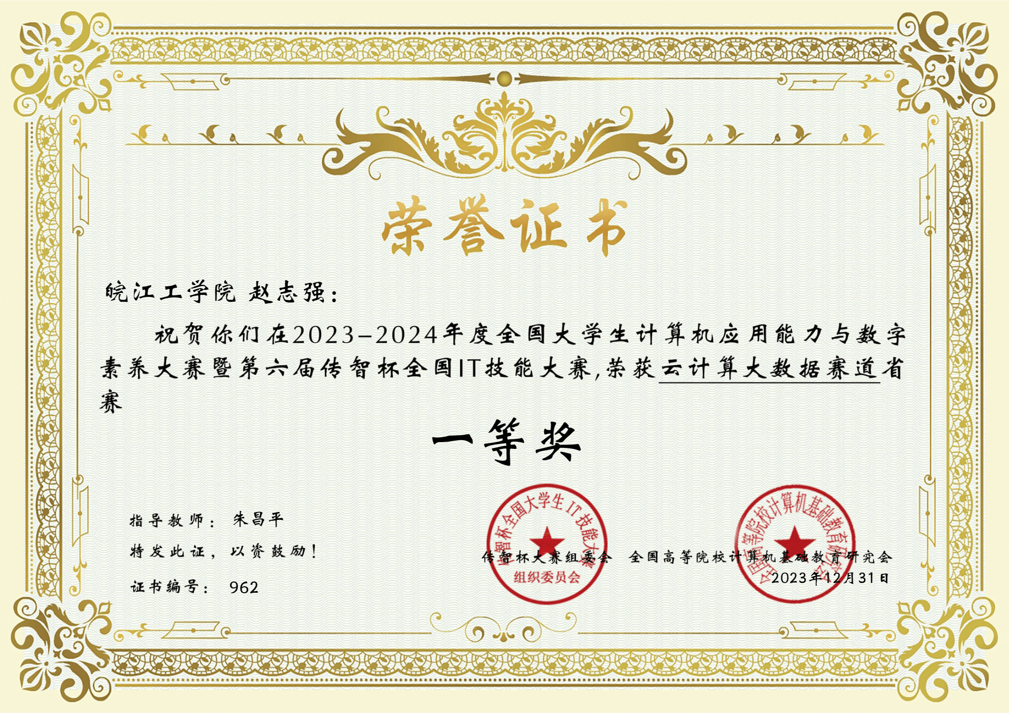 2023年学生省级以上获奖证书