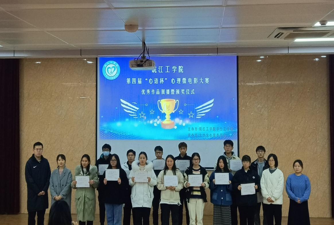 2021年12月19日,皖江工学院第四届“心语杯”心理微电影大赛优秀作品展播暨颁奖仪式在图书馆报告厅正式举行,校心理咨询与健康研究中心老师杨丽丽、韩芬以及学院心理工作站老师李婷和阎磊出席了此次活动,各参赛队伍选手及心委会全体成员参加了此次活动。