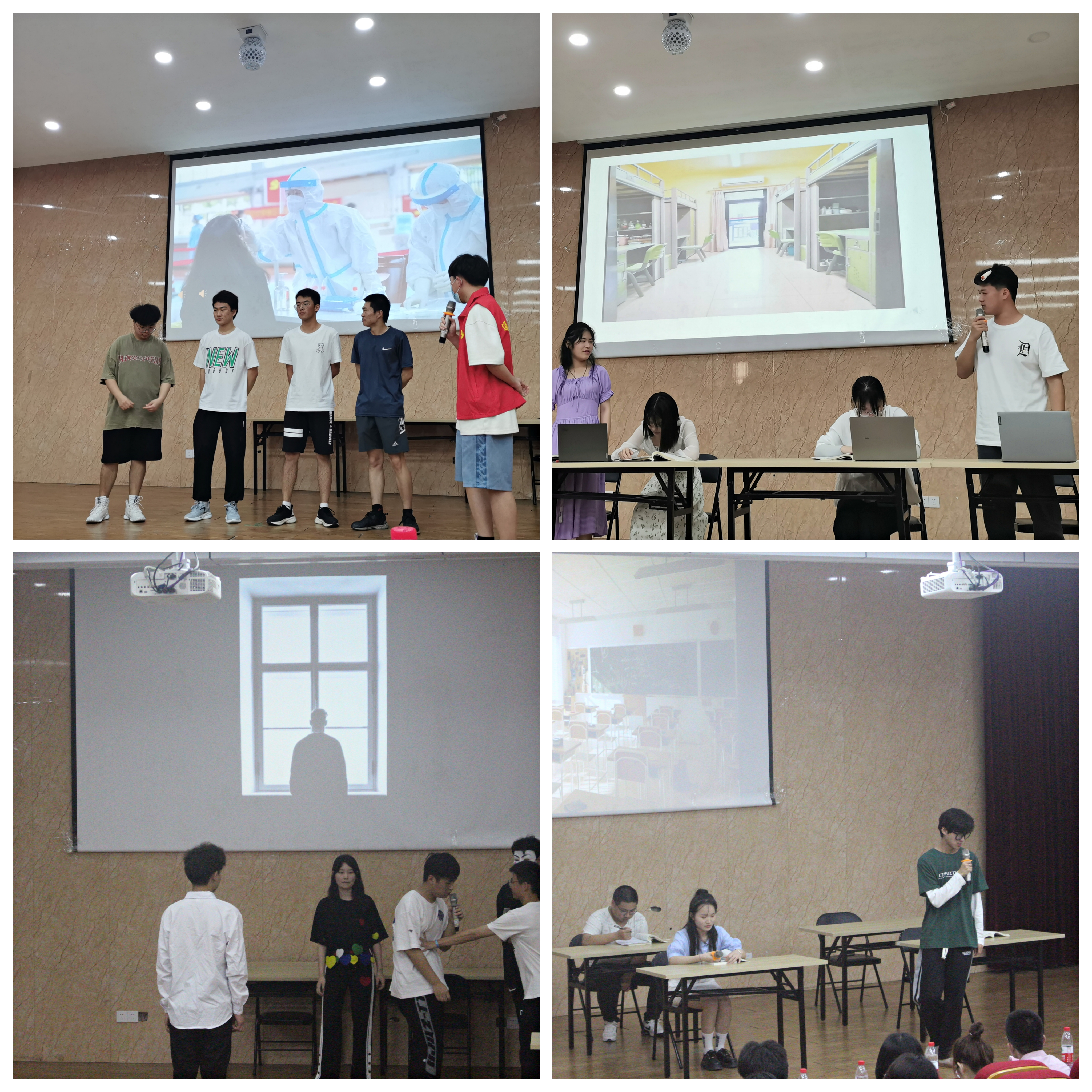 本次比赛共计12组作品入围,参演者们生动有趣的表演获得了现场观众的热烈掌声。各小组作品特色鲜明,突出主题又不失趣味,起到了良好的心理教育效果。土木工程学院的参赛作品《向前一步》告诉我们不必惧怕未知,向前一步便是海阔天空;财经学院的参赛作品《花花寝室,花花关系》告诉我们建立良好宿舍关系的重要秘诀;电气信息工程学院的参赛作品《听我说谢谢你》表达了对疫情防控一线工作者的深深敬意。机械工程学院的参赛作品《完美者》让我们更加全面地认识自我,做自己心中的完美者;艺术设计学院的参赛作品《规劝》通过小小的口罩反映出百态人生,告诉我们疫情防控人人有责;水利工程学院的参赛作品《云疫有阳》反映了同学们在抗击疫情时的坚定信心以及积极向上的生活态度。