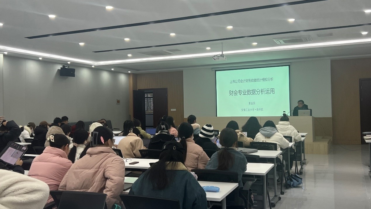 12月11日下午,安徽工业大学商学院金融统计系教授、硕士生导师夏益国在皖江工学院财经管理楼105会议室,为财经学院20级财务管理专业的学生带来了一场主题为《上市公司财务数据分析与运用》的讲座。此次讲座旨在毕业论文确定题材和方向的关键时期,为拓宽学生们选题范围,提高论文学术水平和写作水平,提高学生们处理财经类数据的能力。