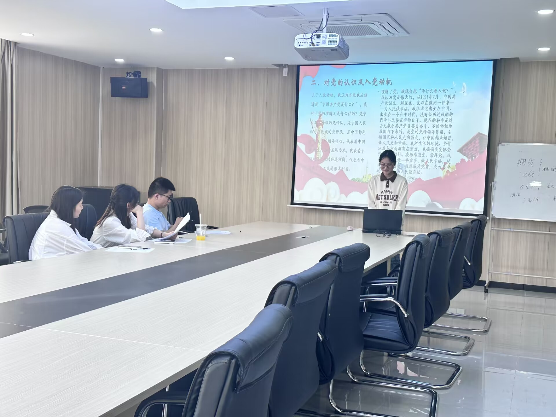 出席本次答辩会的有财经学院学生支部书记丁兄妹、李伦珑、张宇,各专业辅导员老师,共31名发展对象参与了答辩。31名发展对象先后进行了PPT汇报,介绍自身基本情况、志愿服务经历,回顾了自己申请加入中国共产党以来在生活、学习、工作上的表现,分析了其中的优点与不足,并阐述了自身的入党动机。答辩评审老师们根据每位同学的的答辩内容,对党的历史、理论、政策、方针、路线等方面的知识以及时政热点进行提问考察。