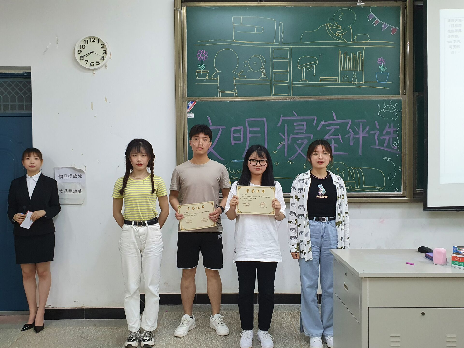 最终获奖的宿舍有,一等奖9-501,二等奖9-509,三等奖6-2-4032,优秀奖5-1-2014,1-1-2013和11-119。