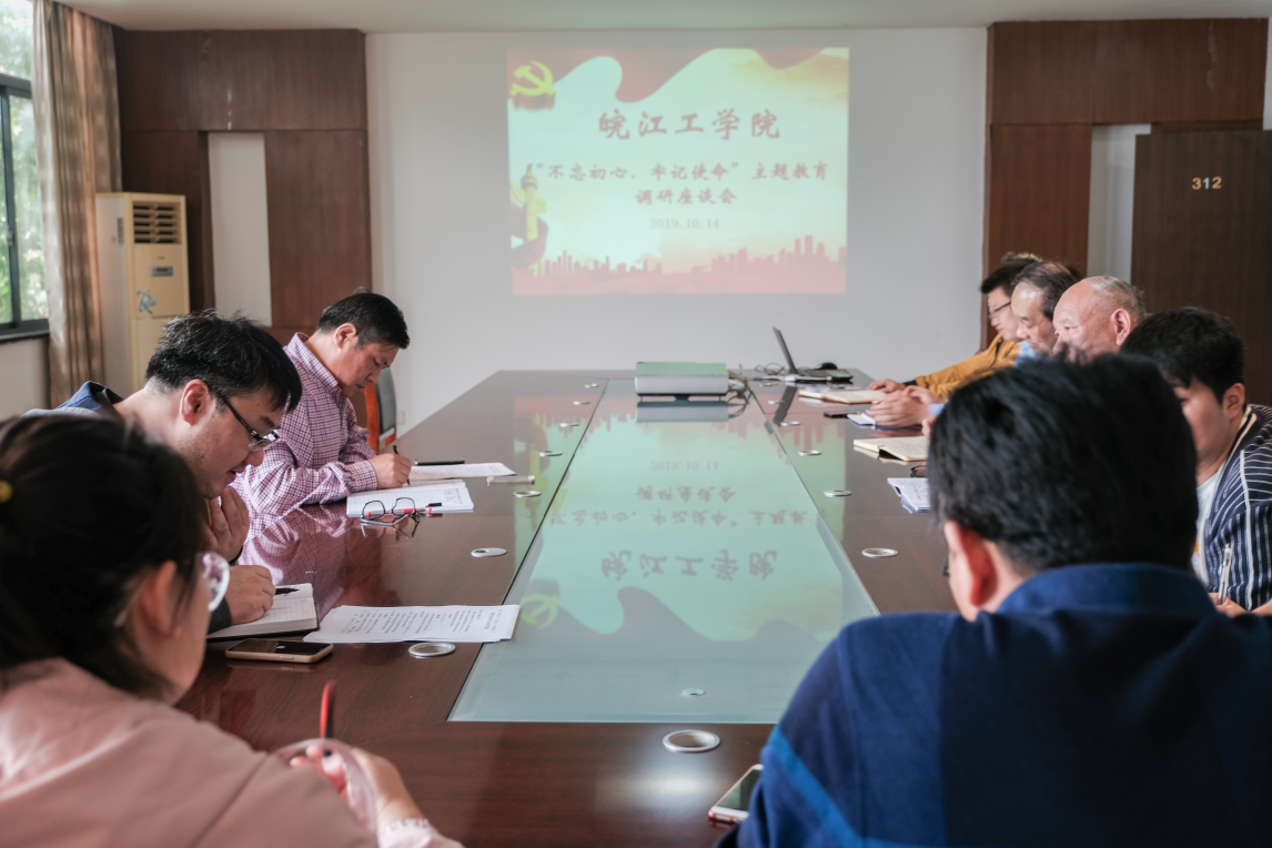10月14日,皖江工学院校长吴继敏,党委委员、学工部部长王志在F312会议室开展“不忘初心、牢记使命”主题教育调查研究座谈会。电气信息工程学院、经济管理学院、学工部三个部门代表参会。会议主要围绕落实党的教育方针、加强学生管理和社团管理方面的问题及对策开展调研。