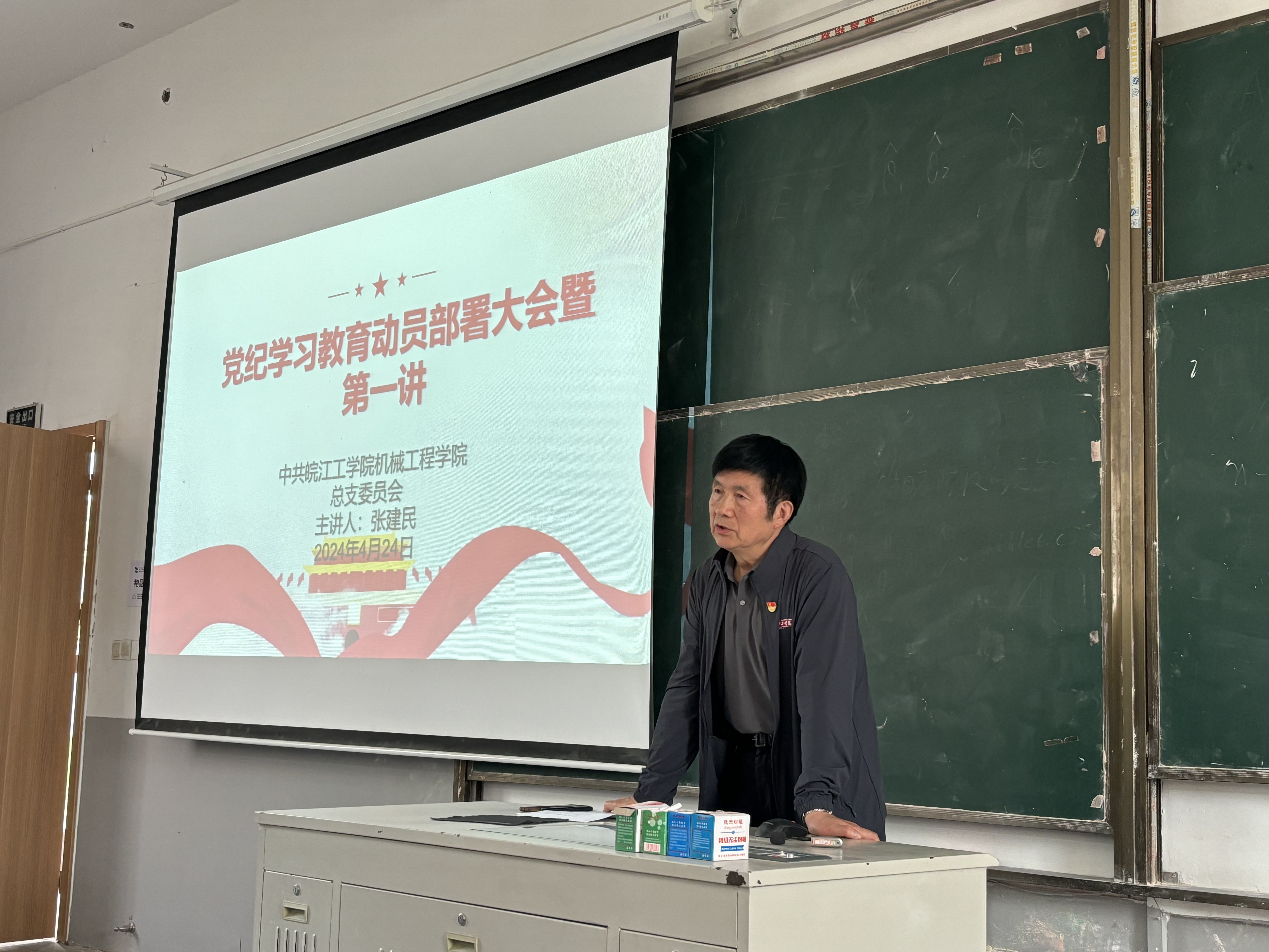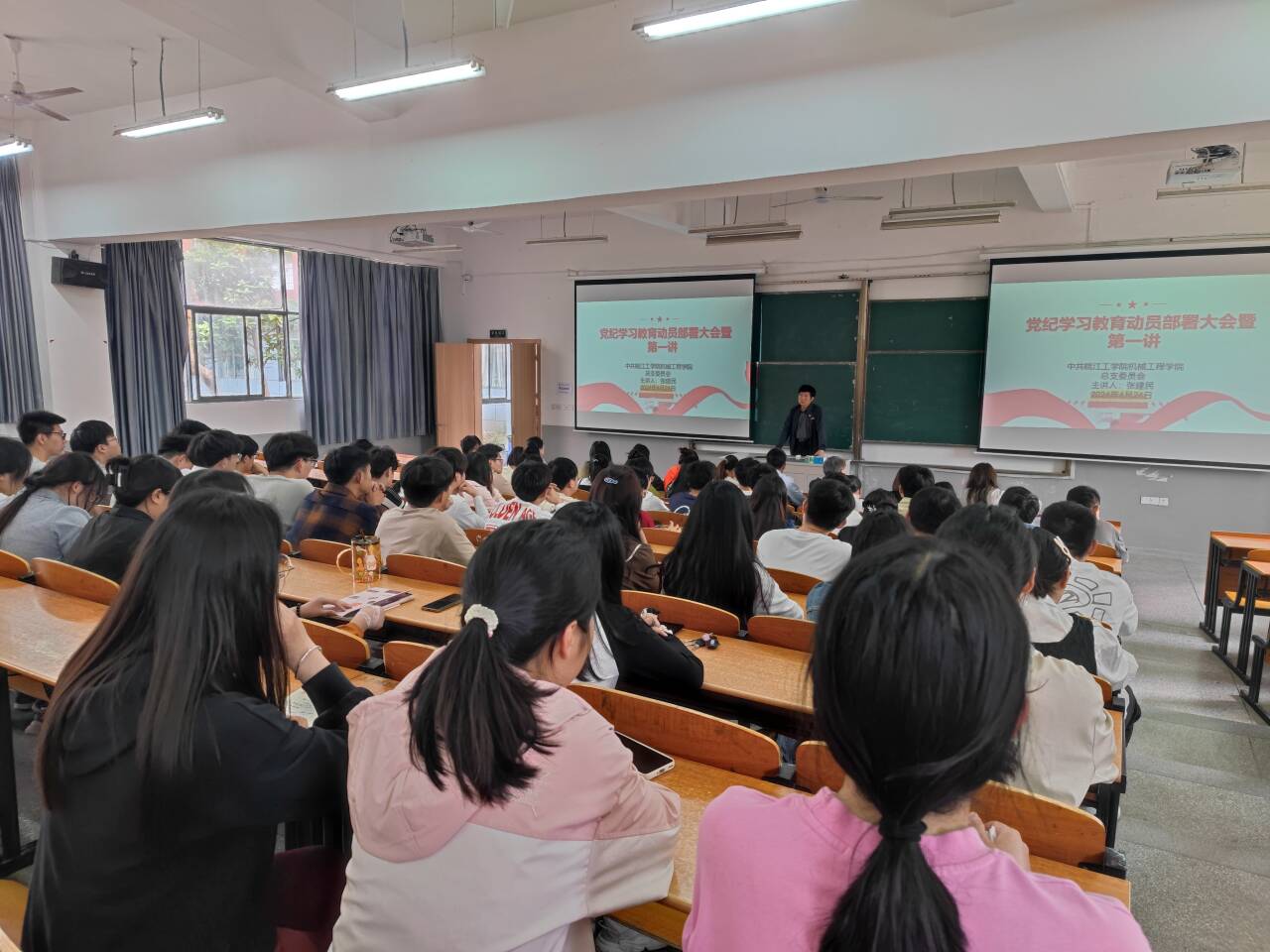4月24日下午,机械工程学院党总支召开全院党员大会,部署党纪学习教育活动。党总支书记张建民主持并进行学习党纪教育第一讲“解读《中国共产党纪律处分条例》”。