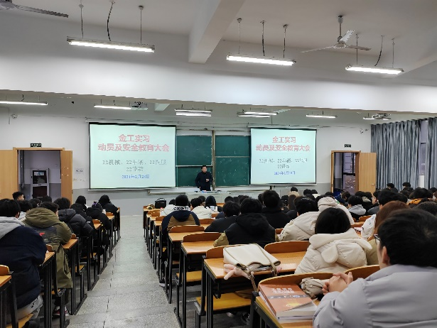 本次实习分为三个阶段。第一阶段开展校内实习总动员暨安全教育大会,大会主要包括两个议程。议程一,由赵恒文副院长就《金工实习》课程的重要性和开展意义做出重要阐述,提醒学生珍惜实习机会,重视实习过程,提高对专业的认识;同时结合鲜活的案例,告诫学生实习安全的重要性,生命高于一切,安全是实习的重中之重;最后赵院长预祝同学们实习能够圆满完成,取得优秀的成绩。议程二,由安徽工业大学创新创业学院杨琦主任具体安排《金工实习》教学内容和实习计划,杨主任通过对7个工种的简单介绍,让同学们对实习内容有了具象化认识,激起了学生高昂的实习兴趣。整个动员会在欢快和活跃的氛围中结束。