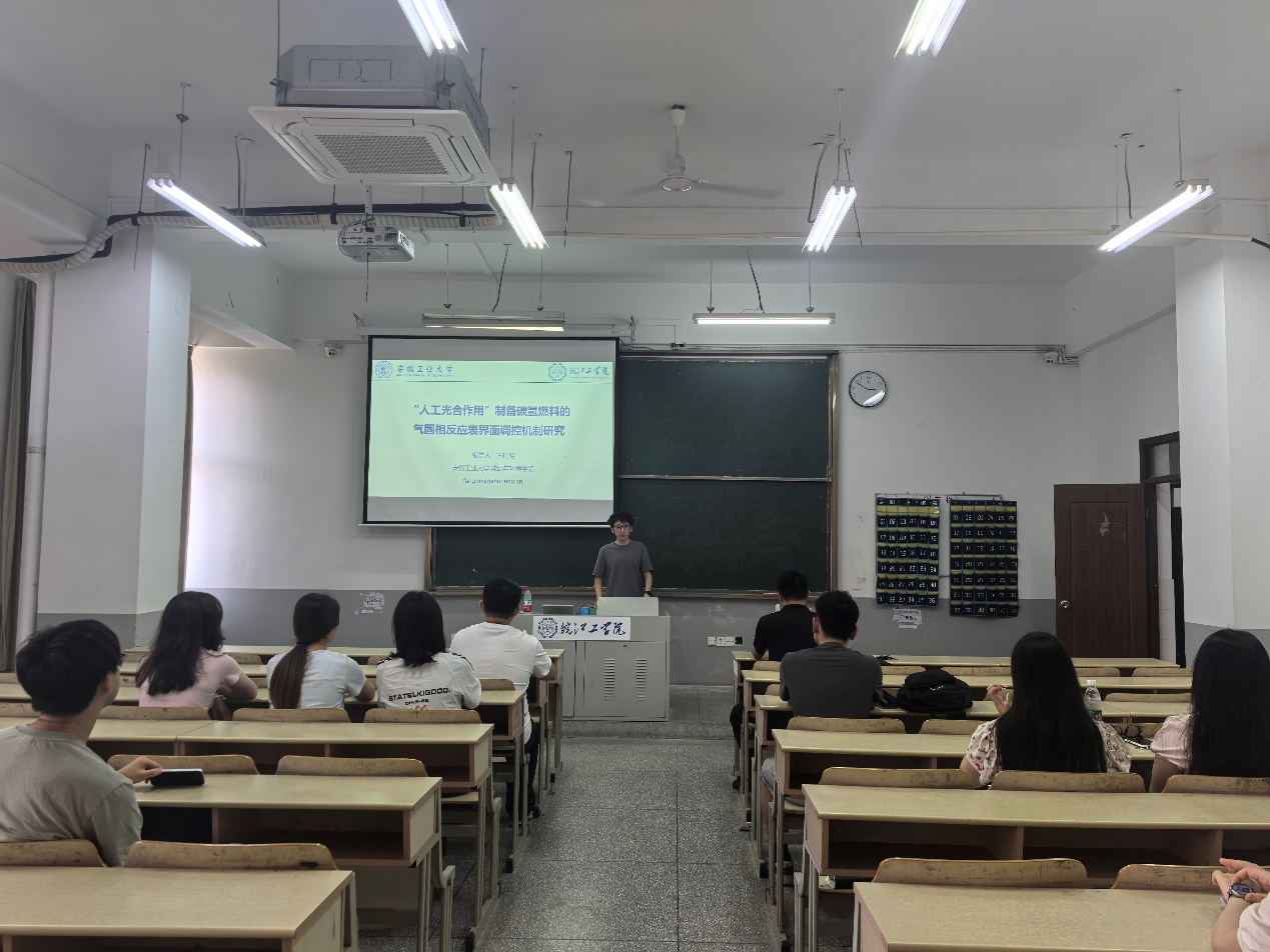 2025年5月14日下午2点50分,皖江工学院霍里山校区B206教室举行了一场别开生面的学术讲座。此次活动由机械工程学院新能源教研室主任韩世昌老师主持,特邀安徽工业大学副教授、硕士生导师、重庆大学-新加坡南洋理工大学联合培养博士方瑞明副教授,为师生们带来题为“人工光合作用”制备碳氢燃料的气固相反应表界面调控机制研究的专题报告。