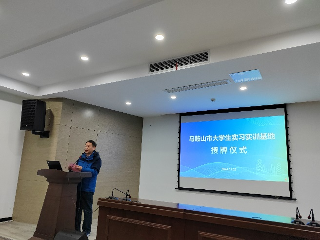 2024年11月27日上午,机械工程学院在安徽省亚威机床制造有限公司举行马鞍山市大学生实习实训基地授牌仪式。出席本次活动的有博望区人才发展研究中心主任陶承林,皖江工学院机械工程学院院长朱天宇,马鞍山市科创和人才发展集团有限公司副总经理许小娟,安徽省亚威机床制造有限公司副总经理张云霞,皖江工学院机械工程学院教研室主任陈田,安徽省亚威机床制造有限公司相关职能部门的领导,机械工学院教师代表和机械工程专业23名学生。此次活动旨在加强学校、政府与企业之间的深度合作,为大学生提供更广阔的实习平台和就业机会。