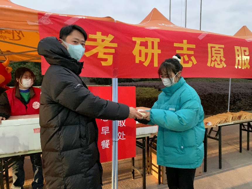 25日清晨,考研日第一天的清晨寒风凛冽,但我院的考研学子却被浓浓的暖意包围。老师们在送考巴士旁为学子送上温暖的早饭并鼓励他们认真对待考试,沉着冷静,发挥自己最佳的水平,同时提醒考研学子注意所在考场和所乘车辆,避免因坐错接送车耽误时间。