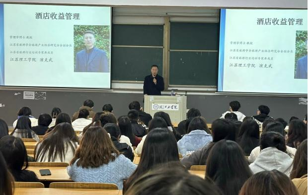 2023年11月29日,酒店管理教研室邀请到江苏理工学院演克武教授(现兼任皖江工学院酒店管理教研室专业负责人)莅临我校,开展以《酒店收益管理》为主题的学术讲座,21级酒店管理专业全体学生及酒店管理教研室全体教师于教学楼A207聆听本次讲座。