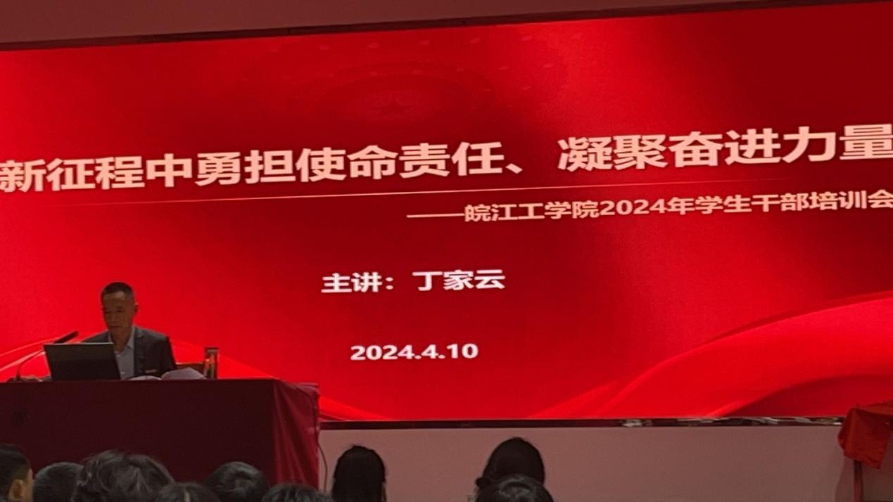 2024年4月10日下午14:30,皖江工学院在霍里山校区图书馆报告厅成功举办了一场学生干部培训会。本次培训会的主题是“如何做一个新时代的学生好干部”,旨在提升学生干部的综合素质,培养他们在新时代背景下的领导能力和服务意识。