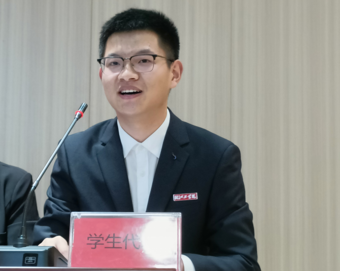 石鑫宇作为两团学生代表发言。他以自身的实践经历讲述了从战战兢兢背诵讲稿,到讲述皖工校史,再到讲述皖工精神的成长历程。并认为,作为“大思政课”实践教学的志愿讲解员,让知识反复出现脑海,最终内化为自己的知识,转变成自己的信仰,自己的价值判断,这是青年马克思主义者培养的重要教学方法。