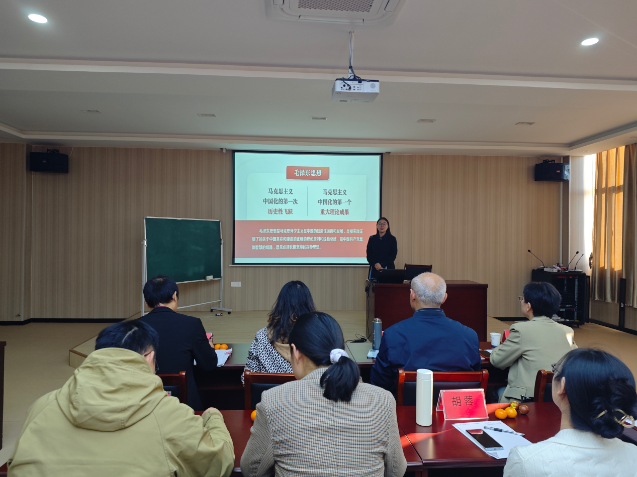 在教学展示环节,安徽工业大学马克思主义学院姜玉齐老师和我院杨锴老师分别围绕“马克思主义中国化时代化的历史进程与理论成果”“毛泽东思想的形成和发展”进行了交流展示。在点评互动环节,安徽工业大学马克思主义学院概论教研室主任阮超群和我院赵萍老师分别进行发言。阮超群高度肯定了两位老师的教学基本功,指出在“概论”教学中,要处理好理论与原著的关系、教材体系与教学体系的关系、备教材与备学生的关系。赵萍指出,两位教师的教学展示各有特点,值得我们学习。一方面,要学习姜玉齐老师在备课过程中高度重视史料的挖掘与运用;另一方面,要学习杨锴老师,在教学过程中能做到推进教材体系向教学体系的转化,运用、重组、拓展和升华的教材资源,让学生更好地理解、吸收相关知识点。最后,安徽工业大学马克思主义学院“概论”教研室支部书记、教研室副主任周玉英对此次集体备课会做总结发言。