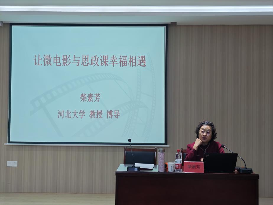 12月17日,马克思主义学院邀请河北大学马克思主义学院副院长柴素芳教授在多功能会议室开展《让微电影与思政课幸福相遇》讲座。马克思主义学院党总支书记、常务副院长刘双,副院长胡耀东,各教研室主任及全体教师参加。会议由刘双主持。