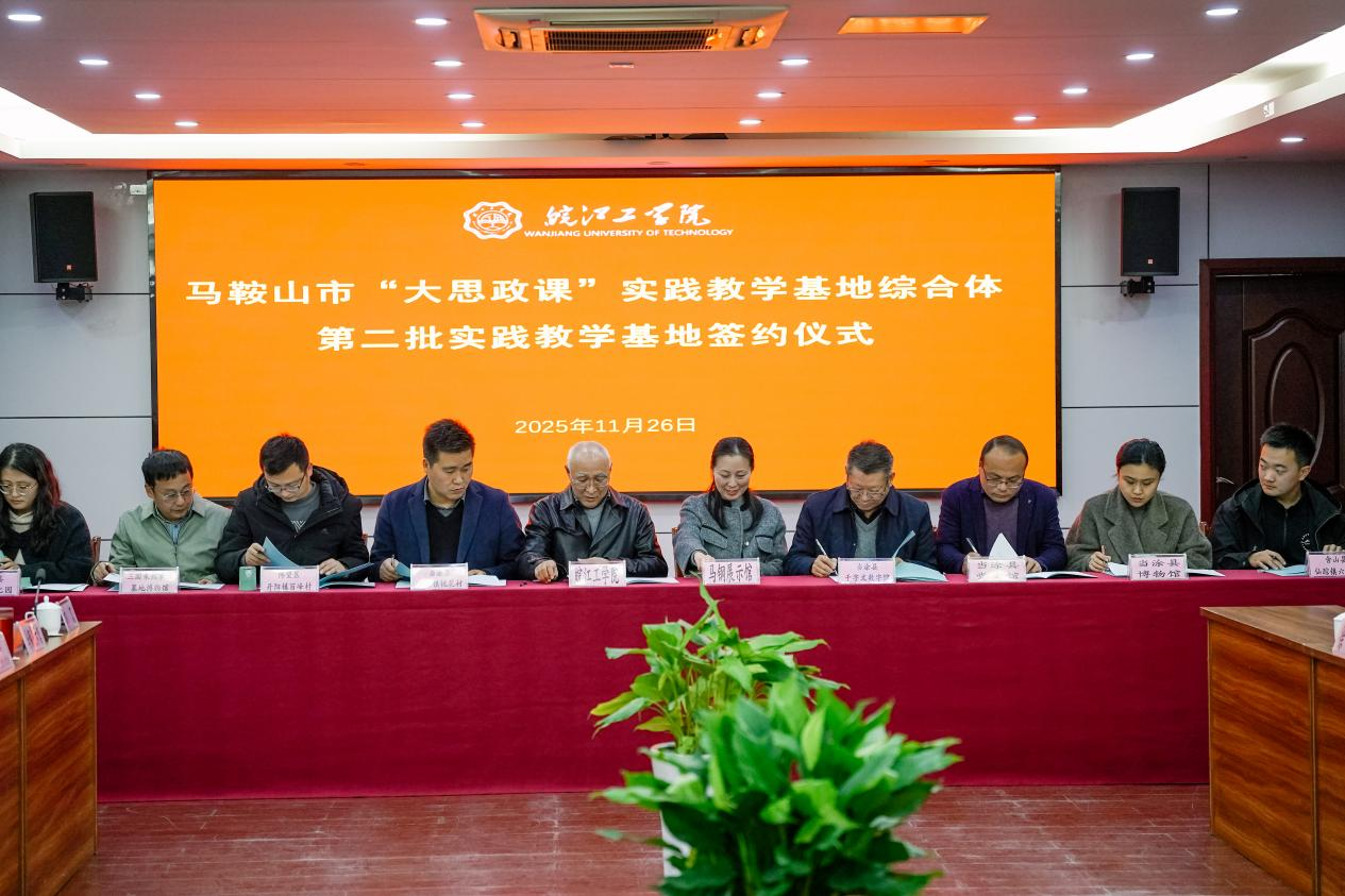 丁家云代表皖江工学院对与会领导、嘉宾表示欢迎,并阐述了学校在落实立德树人根本任务、服务地方发展中的使命担当,表示将全力支持“两个中心”建设。王平宣布入选为马鞍山市第二批“大思政课”实践教学基地综合体成员单位名单,郑明东同十家实践基地成员单位负责人签订合作协议书。