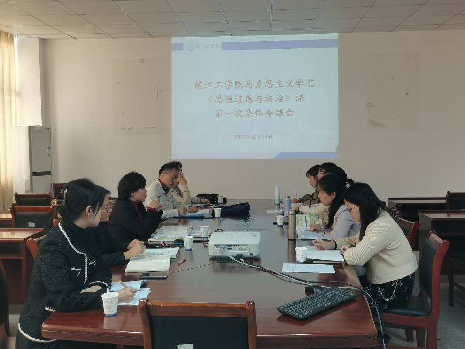 10月19日,马克思主义学院德法与马原教研室召开《思想道德与法治》集体备课会,马克思主义学院常务副院长刘双、德法与马原教研室赵萍及课程组全体教师参加了会议,会议由赵萍主持。