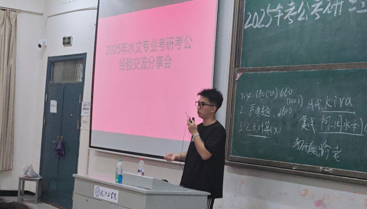 为助力学生科学规划学业与职业发展,提升考研考公竞争力,水利工程学院水文专业在5月14日晚上7点于弘思楼S207召开考研考公经验分享交流会,此类活动从2013年开始已举办十一届。本次活动特别邀请2025届成功考取研究生、公务员及事业单位的14名优秀学子分享备考经验。水利工程学院副院长张鹏、水文教研室专业教师和水文专业有考研考公意向的学生约200人参加。