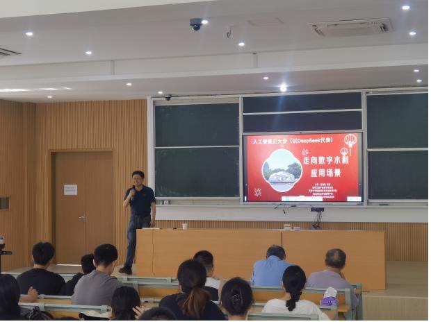 2025年5月21日下午,水利工程学院水工教研室主办的第十四周教研室活动“人工智能正大步走向,数字水利应用场景”讲座在水木楼南101开展。特邀河海大学娄保东教授担任主讲,水利工程学院院长胡明、院长助理水工教研室主任田晓丹及水利工程专业师生80余人参加了本次讲座。