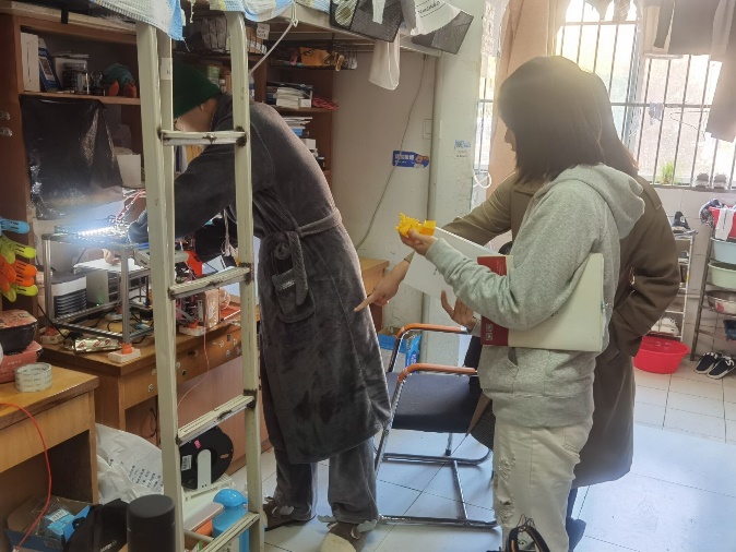 通过此次检查帮助同学们提高寝室安全卫生意识,助力养成良好的生活习惯,保持优良作风,共同创造一个文明、和谐的宿舍。 (土木工程学院 供稿)
