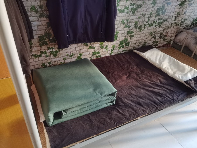老师们来到了退伍返校同学的宿舍,寝具整齐有序,被子方方正正,桌榻没有其他杂物,地面被擦得发亮,床下的箱子整齐排列成一条直线。谈及重返大学生活,他说,在部队的生活,宿舍里每样物品的使用和摆放都有着严格的要求和规定。参军的经历使我养成良好的卫生、生活习惯,并时刻提醒自己注意生活作风。事后,老师们总结表示安全工作无小事,今后也要一如既往的对宿舍安全及卫生进行检查,进一步推进学生宿舍安全管理,坚持“安全第一,预防为主”,切实保障学生的安全。