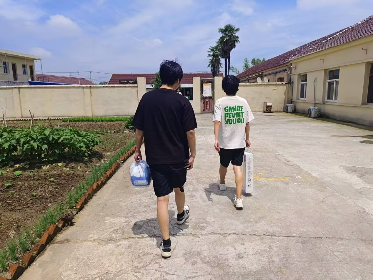 6月13日清晨,团队成员携带打包整齐的物资,乘坐近两小时公交抵达养老院。上午9点,物资发放工作有序展开,徐越上细心叮嘱老人注意保暖,刘梓杭主动为行动不便的李爷爷上门送衣并协助试穿,确保合身舒适。