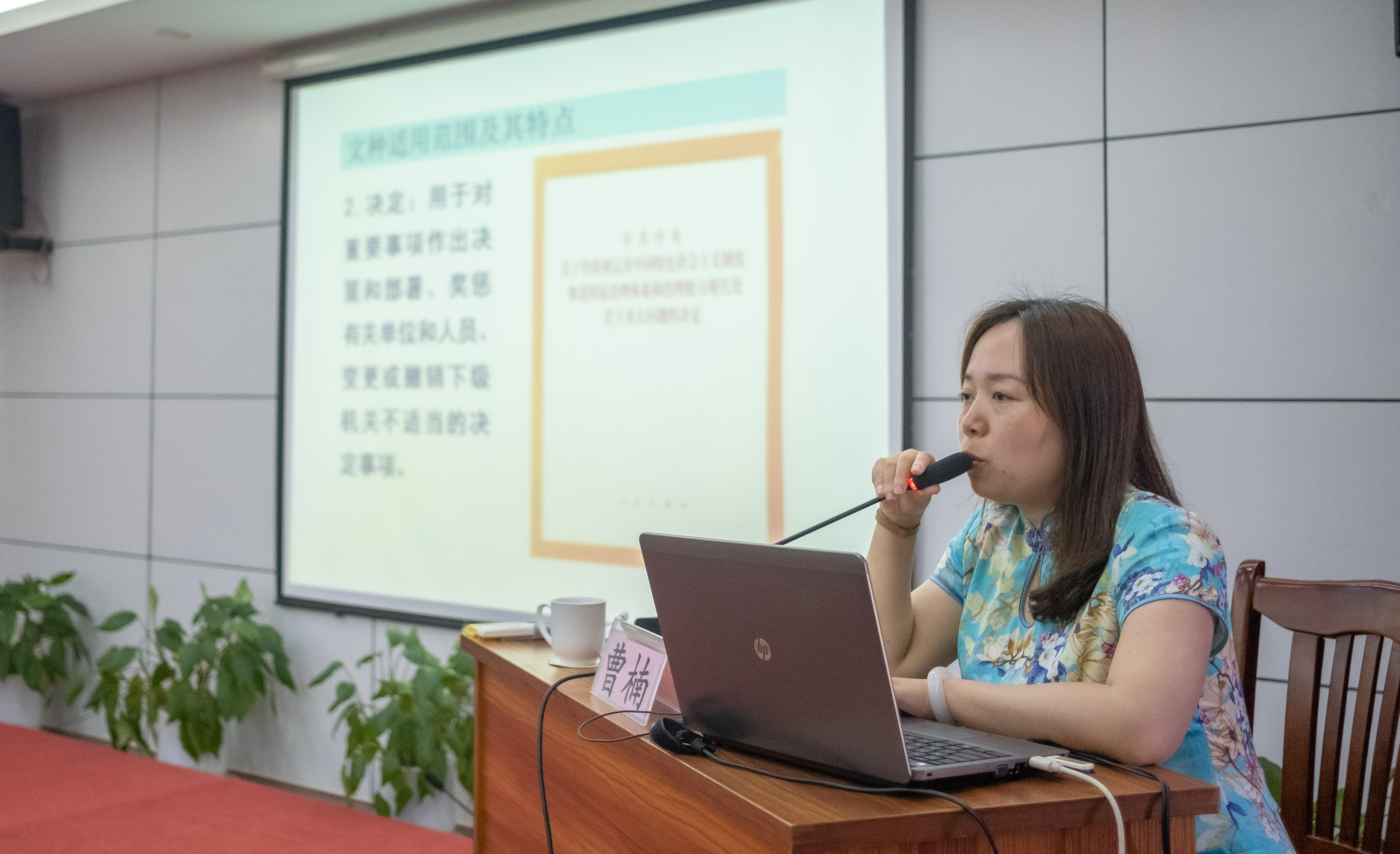 曹楠结合丰富的工作经验,凭借深厚的文秘工作理论功底,深入浅出地为大家上了一堂内容翔实、实用性强的讲座。具体介绍了公告、通告、意见、通知、批复、函等十五种公文种类,每种公文的适用范围、特点及常见错误,强调了上下级关系行文的基本规则,讲述了公文起草的具体标准和操作方法,阐明了把好公文审核的重要关口。