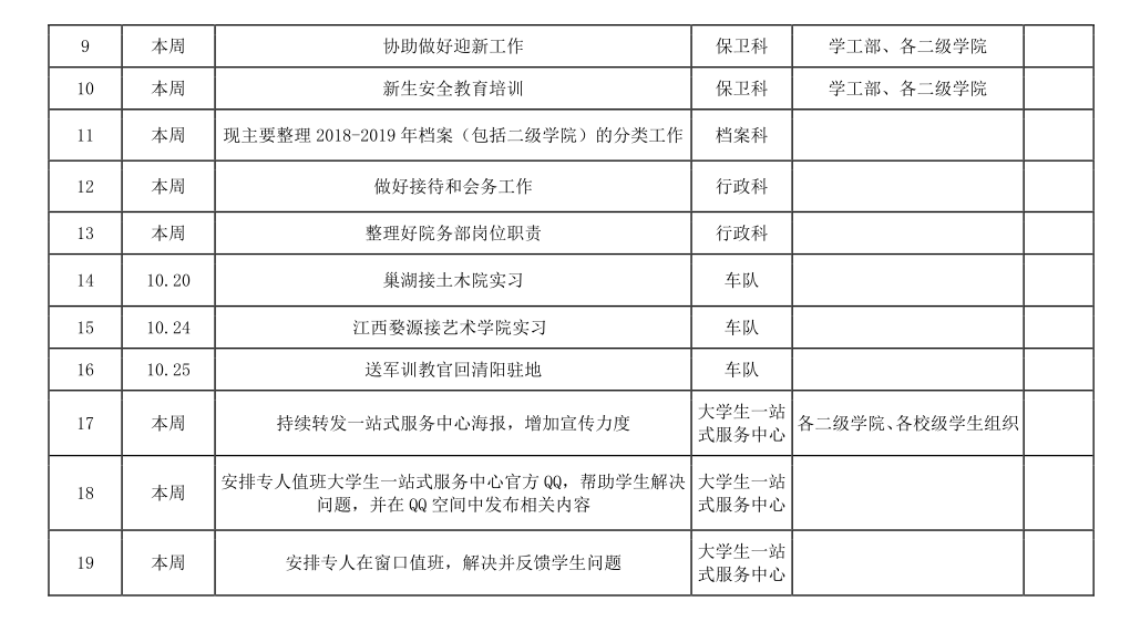 皖江工学院院务部第六周工作安排