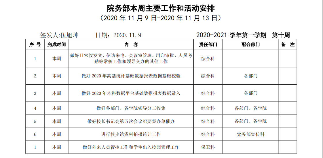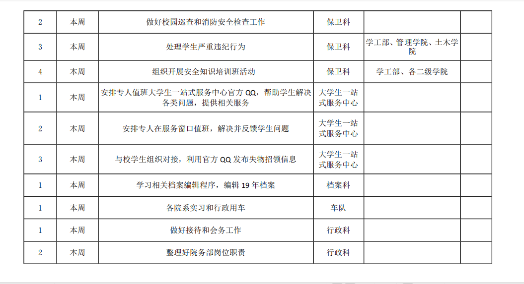 皖江工学院院务部第十周工作安排