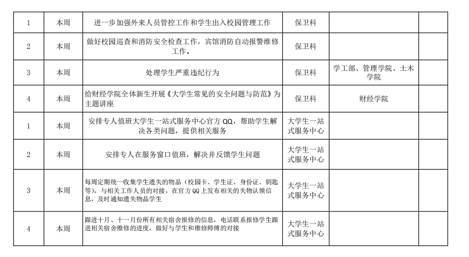 皖江工学院院务部第十周工作安排