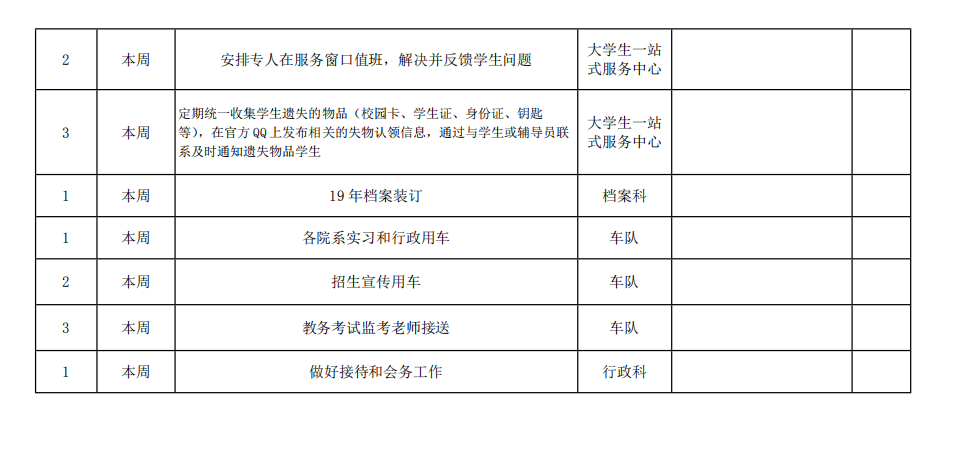 皖江工学院院务部第十七周工作安排