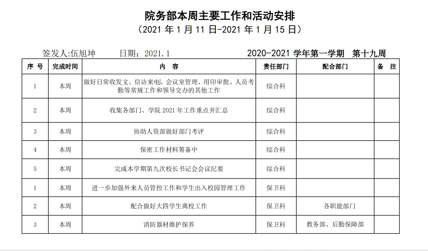 院务部第十九周工作安排.docx