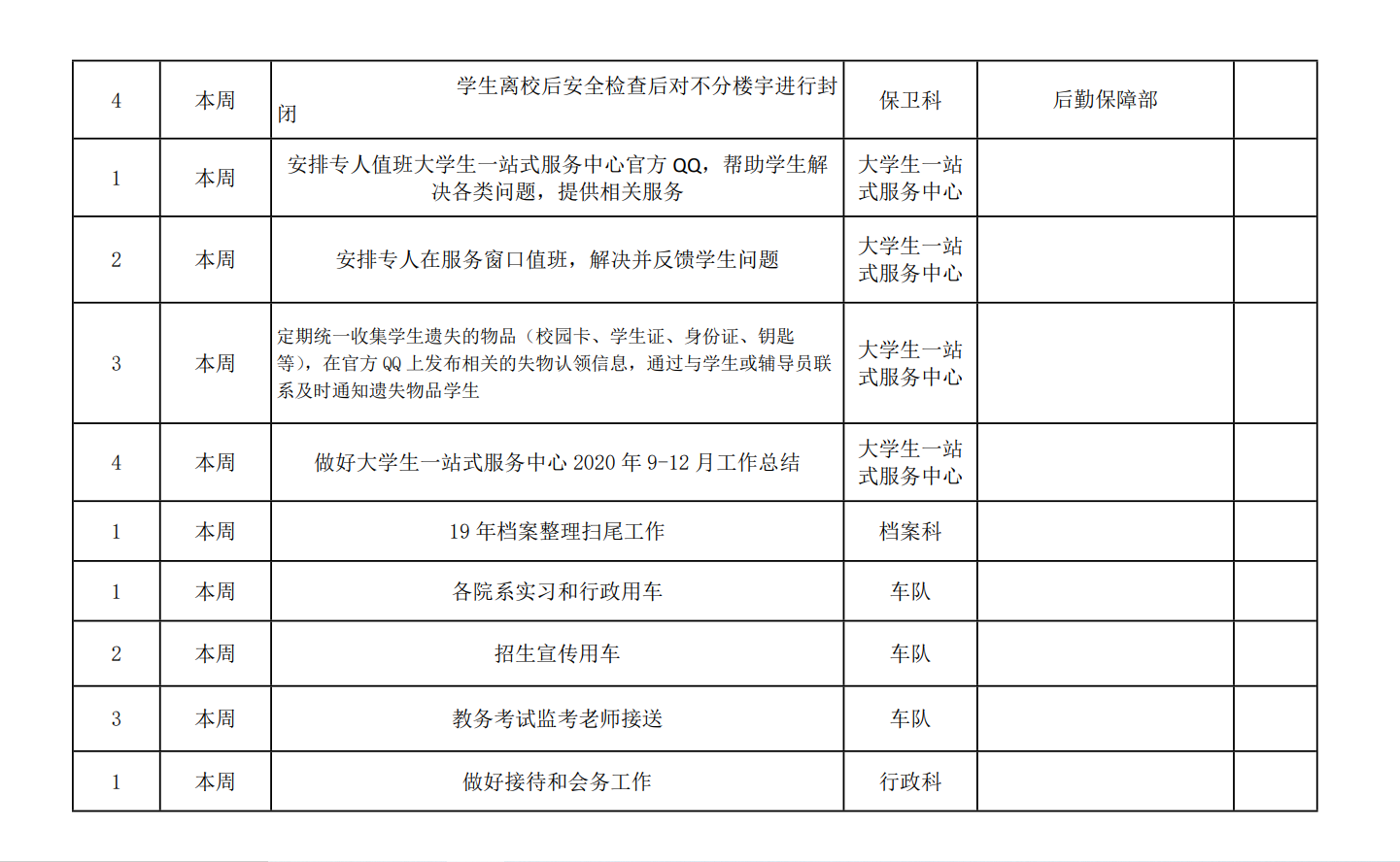 皖江工学院院务部第一周工作安排