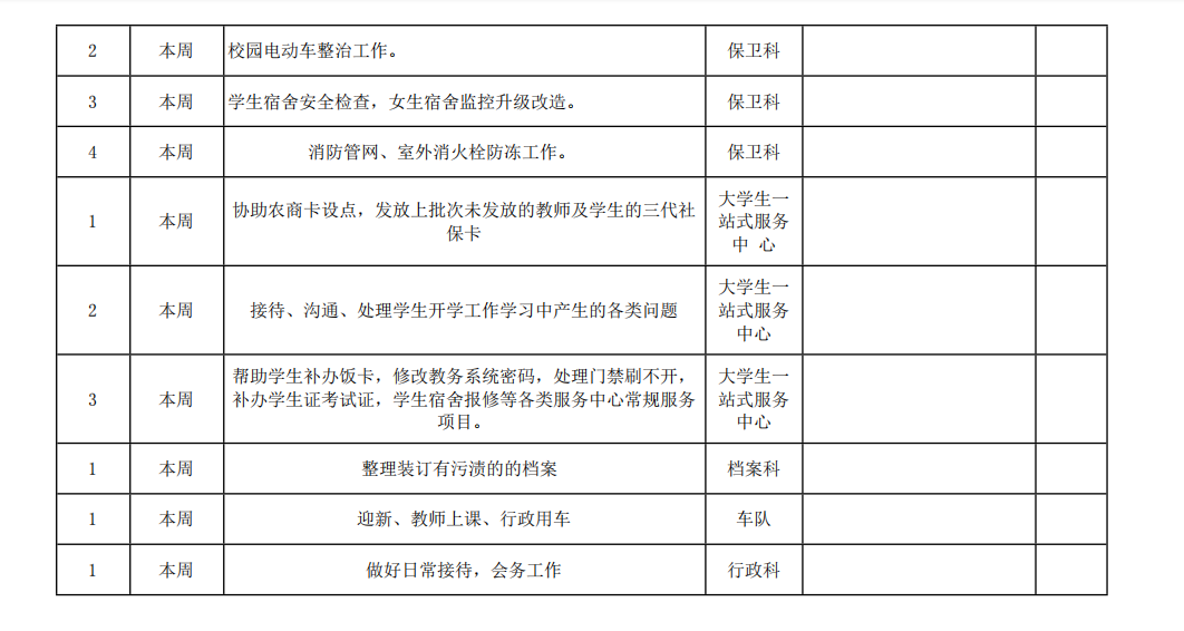 皖江工学院院务部第十三周工作安排