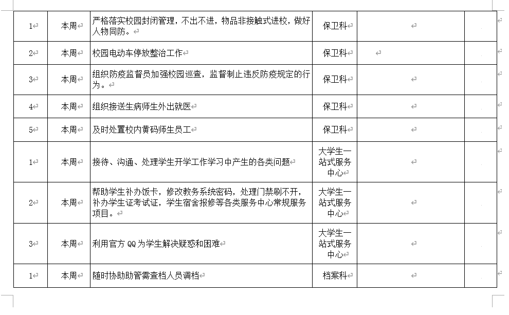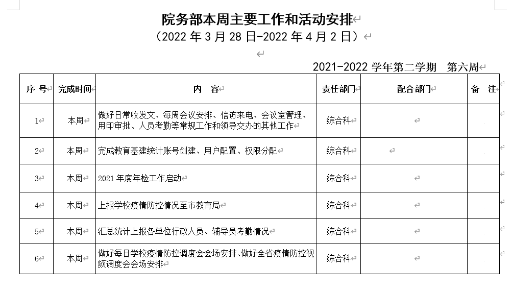 皖江工学院院务部第六周工作安排