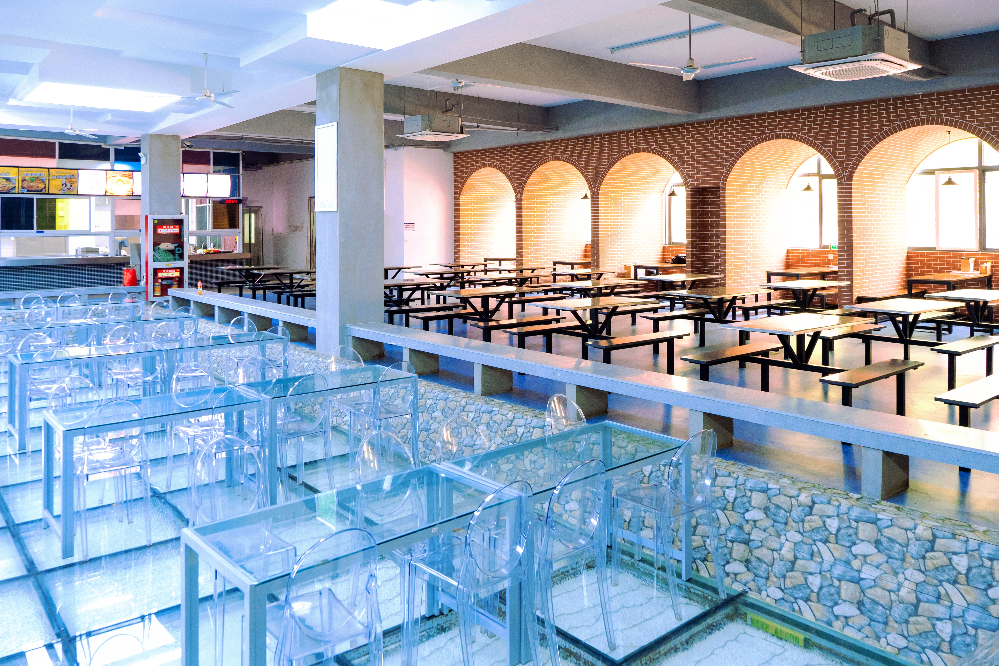 答:学校霍里山校区座山环水,大树参天;郑蒲港校区寸草春晖,楼群错落。校园环境整洁优美,教学生活设施齐备,教室及公寓均安装空调,宜学、宜居。校园内31栋学生公寓错落有致,每栋公寓均配有宿舍管理人员24小时值班,全面服务学生生活;公寓内每个房间配备独立卫浴等。学校拥有标准化学生餐厅4家,特色餐厅3家,共计1.8万㎡,餐厅整洁、明亮、舒适,菜肴美味可口,可满足近2万学生就餐需求。校内设有经营服务业态20余种,满足了在校师生的日常所需。