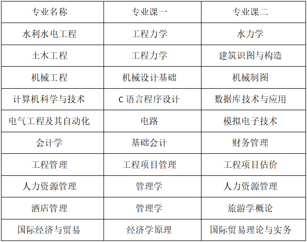 | 水利水电工程 | 水利大类、土木建筑大类 水利工程与管理类 |