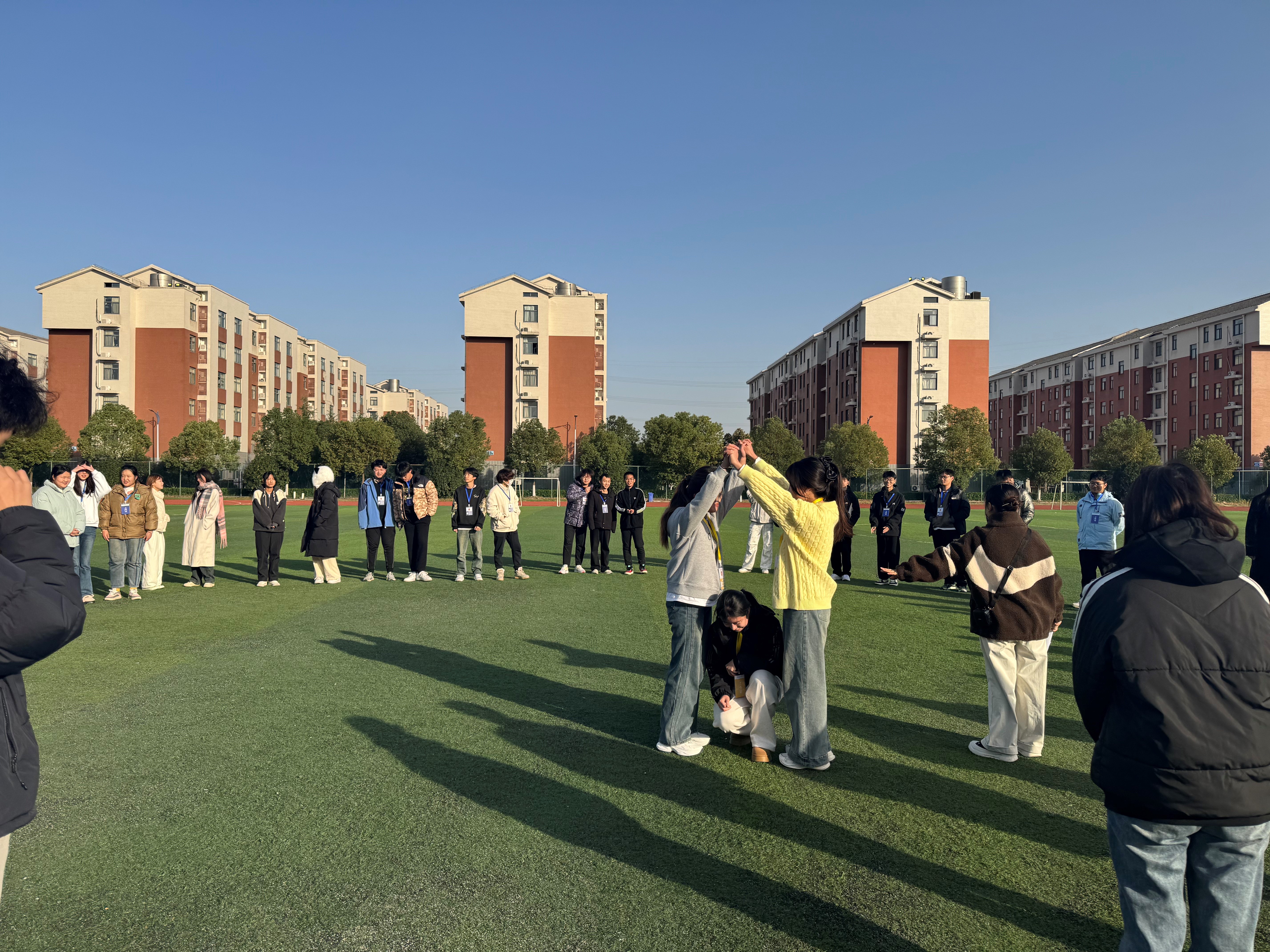 为增强大学生心理委员会组织凝聚力,提升组织成员心理素质,激发其工作热情,11月27日下午,郑蒲港校区心理中心副主任韩芬带领心委近60名成员在校区田径场开展了一场主题为“凝心聚力,与尔同行”的户外团体心理素质拓展活动。